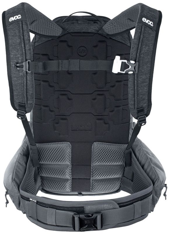 Die Hauptmerkmale der „Body Hugging“- Passform von EVOC sind die möglichst körpernahe Positionierung des Rucksacks, und die Verteilung des Gewichts über eine große Fläche auf die Hüften. Dank der optimierten Verbindung zwischen den Schulterträgern und den breiten Hüftflossen, die aus dem Rückenpanel „herauswachsen“, bleibt der Rucksack bei jeglicher Action verlässlich und so stabil wie möglich auf Position – für mehr Komfort und Kontrolle.