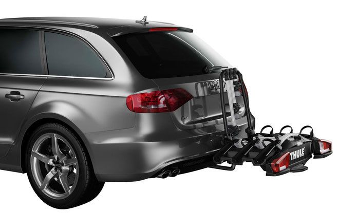 Der Thule VeloSpace XT kompakte und leichte VeloCompact  Fahrradträger für 3 Räder von Thule für den Alltagsgebrauch. Die lassen sich durch abnehmbare Fahrradhaltearme mit abschließbaren Drehknöpfen bequem aufladen.